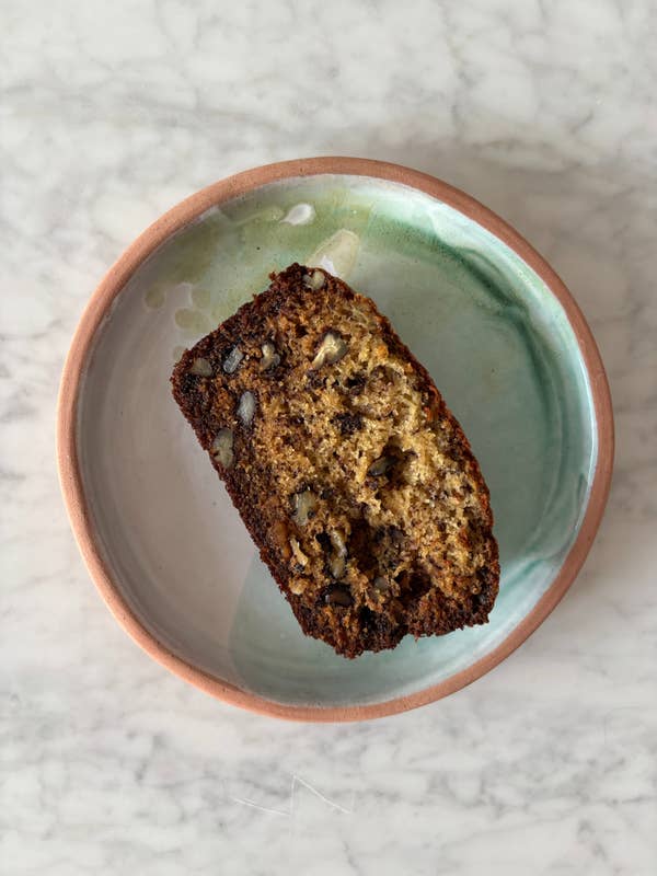 Given this was the banana bread heard ‘round the world, I thought it would be an immediate frontrunner. But I’m not one for quick breads that veer into dessert territory, and that’s exactly what this one does. It’s incredibly sweet, even with the dark chocolate chunks meant to balance it out, and has more of a cake-like, almost chewy texture than the tender crumb I associate with banana bread. While it wasn’t my cup of tea, I do think it’s a good banana cake. The Bundt shape is super impressive looking, and it’d make a great party dessert.