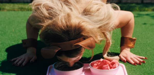 5. The scene continues with her lapping up water from a floor bowl exactly like a canine.