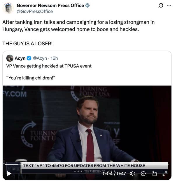 @GovPressOffice / @Acyn / The White House / Via x.com / Via x.com
