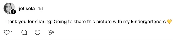 10. “Thank you for sharing! Going to share this picture with my kindergarteners 💛”
