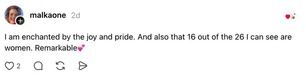 4. “I am enchanted by the joy and pride. And also that 16 out of the 26 I can see are women. Remarkable💕”